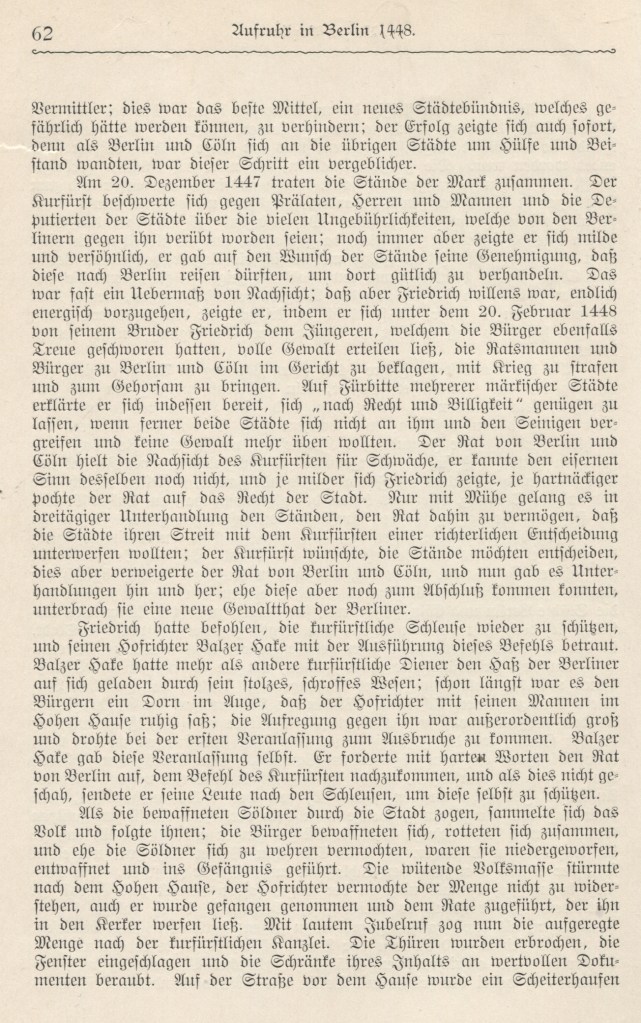 So bleibt mir aber die Genugtuung, heute, in einer ähnlich dunklen Periode der Geschichtsverfälschung, der Verdrängung und sogar strafrechtlichen Verfolgung historischer Wahrheiten, Adolph Streckfuß im Original zu Wort kommen zu lassen – zum sogenannten BERLINER UNWILLEN von 1448, dessen Andenken die Geschichtsfälscher rings um die Schloss-Kopie am Lustgarten in ihren FAKE-NEWS so gern auslöschen möchten: