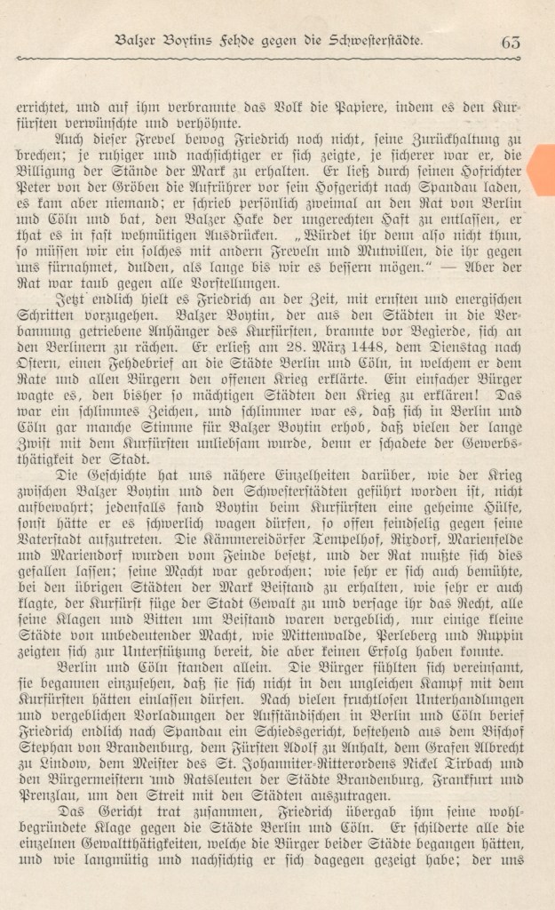 Wer wagt es in der gegenwärtigen, sehr dunklen Periode der Berliner und deutschen Geschichtsdarstellung, solche Wahrheiten auszussprechen oder gar durcken zu lassen? Vor allem jene Zusammenhänge zwischen der Niederschlagung des BERLINER UNWILLENS und den erfolgreichen Attacken der feudalen Reaktion gegen die städtische Selbstverwaltung im gesamten Reich? Da befleißigt man sich doch lieber mit bunten Bildchen der Fürstenverherrlichung;
