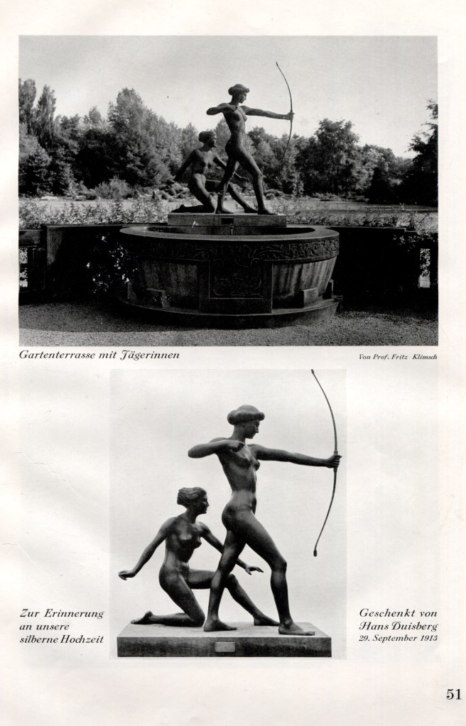 Carl Duisberg (1861-1935), der bekannte Chef der späteren zum IG-Farben-Konzerns gehörenden Werke Bayer-Leverkusen war schon sehr früh ein Bewunderer der Skulpturen von Fritz Klimsch.