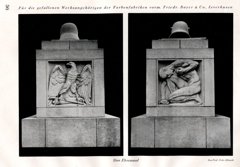 Der im September 1933 vom Konzern Bayer Leverkusen herausgegebene Prachtband „Kunst in Leverkusen“ stellt über 25 Plastiken, Platzgestaltungen, Brunnen aus dem Atelier Klimschs im Auftrage von Duisberg – zwischen 1912 und 1935 – vor.