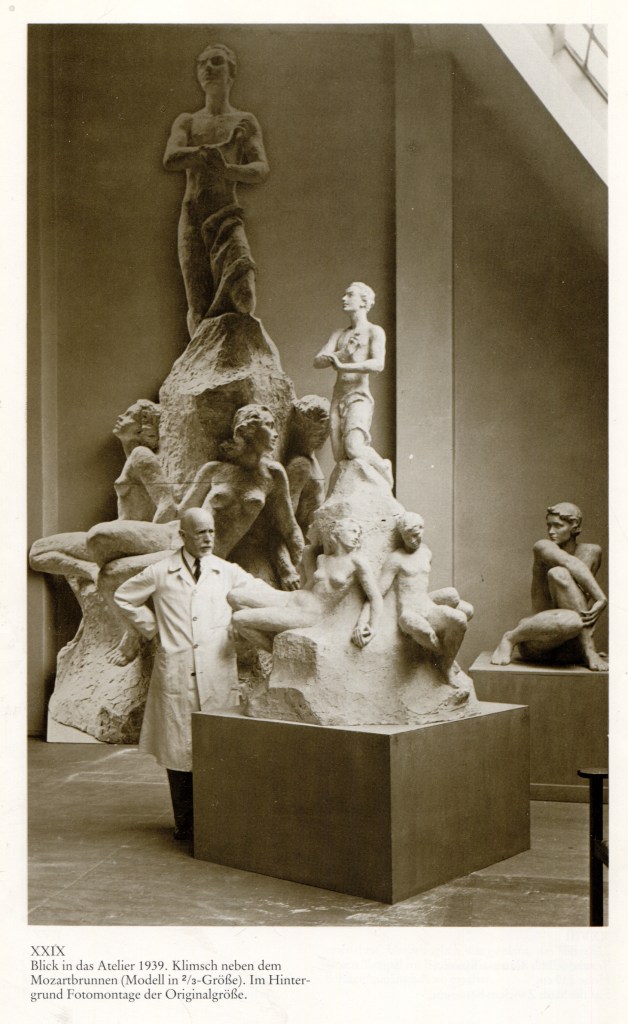 Dem entscheidenden Einfluß des Ministers Goebbels ist es zuzuschreiben, dass Klimsch nach 1935 – nach einer Phase des gegenseitigen „Abtastens“ – mit größeren Ausstellungen geehrt, mit öffentlichen Aufträgen überhäuft wurde, deren Krönung die Gestaltung des Mozartbrunnens in der „ins Reich heimgeholten“ Stadt Salzburg werden sollte. (Literatur dazu: Schriftenreihe des Archivs der Stadt Salzburg 45, Bd. 7, Die Stadt Salzburg im Nationalsozialismus, S. 480)