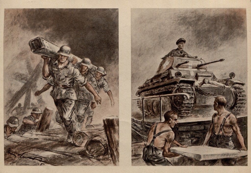 Mit der Aggression Nazi-Deutschlands 1939 gegen Polen und dem damit ausgelösten Zweiten Weltkrieg erfahren die regimetreuen Aktivitäten des „Staatskünstlers“ Klimsch eine weitere Steigerung. Die Fotos seiner Skulpturen finden sich – selbstverständlich mit seiner Billigung – auf den Seiten der Propagandadrucke für den Frontsoldaten: