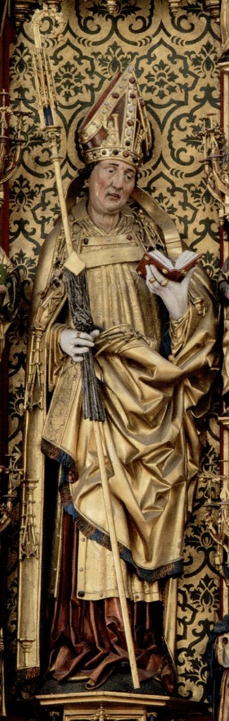 Was ich davon halte? Das sei nun das Rätsel für mich. Und was ich davon halte, wenn man diese drei jungen Bauern im Zusammenhang mit der barfüßigen Heiligen vom Altarbild betrachte. Das sei das Ratespiel, das er mit mir vorhabe. Er lachte hämisch und ich war verwirrt. Was soll ich darauf antworten? Ich hatte mich mit diesem Bilde und auch mit der Heiligen Hedwig nun nicht so im Detail beschäftigt, dass ich sofort eine Antwort darauf hatte. Unser Studiosus war richtig erfreut und stolz, dass er mich bei einer Unkenntnis ertappt hatte. Und begann eine, wie er meinte, sehr wissenschaftliche Erklärung., die er bei der nächsten Disputation dem Professor Wünsch präsentieren wolle. Ich nickte zum Zeichen des Einverständnisses und lauschte aufmerksam. Wir seien nun also nach den Kriegszeiten zurück in eine friedliche Welt gekommen. Da brauche man keine Schuhe – wie Hedwig demonstriere – und da müsse man sich durch harte Arbeit sein täglich Brot verdienen. Die Gesichter der drei Noah-Söhne zeigten keine Unzufriedenheit, sie haben sich mit Gott versöhnt, die Arbeit schein für sie sogar eine Art Befreiung, eine Art menschlicher Schöpfungsakt zu sein. Hedwig zeige aber auch noch eine andere Tugend, die der leidenschaftlichen Liebe! Ob ich das auch an der Figur erkenne? Erkennen Sie die Verzückung, die Leidenschaft in den Gesichtszügen, das Stürmische im Faltenwurf des blauen und goldenen Gewandes?