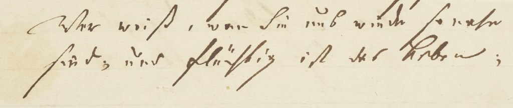 Kurz und knapp erwähnt Josias das bedeutende private Faktum seiner Frankfurter Jahre in den Lebenserinnerungen: „Löffler verheirathete sich im Winter 1784, am 9. November, mit der Tochter des Oberconsistorialraths Silberschlag in Berlin.“ (Kleine Schriften, Bd.I, S. XVI) Edda wirft bissig ein: Nicht einmal den Vornamen der Erwählten gibt er uns preis ! Also – durchsuchen wir den gesamten Packen nochmals nach Briefen oder ähnlichen intimen Papieren, die uns Auskunft über die Ehefrau des Predigers geben. Josias hatte die schöne und kluge junge Frau vermutlich schon in den ersten Monaten seiner Berliner Zeit kennengelernt, als er durch die Vermittlung seiner Hallenser Universitätslehrer Semler und Nösselt die Runde bei den Spitzen der lutherischen Kirchen in Berlin absolvierte, auch auf der Suche nach einer Beschäftigung als Privatlehrer, also im Frühjahr und Sommer 1774. Da war sie noch ein Kind, aufgeweckt, eine vielversprechende sinnliche Schönheit, neugierig, aber als Tochter eines Oberkonsistorialrats familienbewusst und auch diszipliniert. Er verliert sie aus den Augen, nimmt am Krieg 1778/79 als Feldprediger teil, kommt 1779 zurück und wird sie um 1780 als junges, aufgeblühtes Mädchen wiedergesehen haben – im Hause ihrer Eltern. Aus Sympathie wird Erregung, Begehren und Liebe, aber der junge Mann hat noch keine Anstellung, die ihm so viel einbringt, dass er die Tochter eines hochgestellten Kirchenpolitikers heiraten kann. Da erscheint die Rettung am Horizont – die Professur in Frankfurt ! Der vor mir liegende Brief vom 1. Juni 1785, eine Kopie aus dem Archiv des Verlegers Frommann, verrät uns nun endlich den Namen des Mädchens: Dorothea ! Das Schreiben strahlt Zärtlichkeit aus, sehr viel Intimität: „dein zärtlich liebendes Dörtchen“ und „bestes Männchen“ sind nicht die Worte einer nur aus Vernunft und Laufbahn-Kalkül angetrauten Ehefrau. Aber lassen wir sie selbst sprechen – manche Krakelei muß ich leider auslassen – „Glücklich und gesund bin ich gestern Abend um 10 Uhr hier in Berlin angekommen, bestes Männchen. Um 10 Uhr erst, wirst du fragen? Ja, ob mir gleich meine beyden Brüder in Dahlwitz schon erwarteten, so hatten wir doch noch so viel … , daß wir erst ziemlich spät von Dahlwitz abfuhren also auch nicht sehr früh hier ankommen konnten. Mit welchen Umarmungen und Küssen und Freude ich nun hier von meinen lieben Eltern empfangen ward, werde ich dir wohl nicht erst beschreiben dürfen, genug wenn ich dir sage, daß es ganz so wahr, wie wir es uns vorstellten.