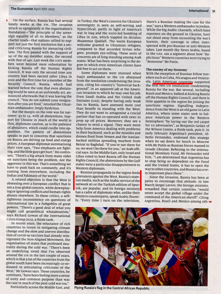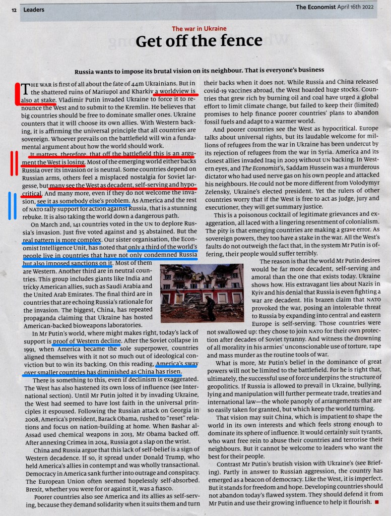 À Propos – „Alternative Weltordnung“ nennt der britische „Economist“ vom 19.3.2022 das neue „Schreckgespenst“ für den NORD/WESTEN